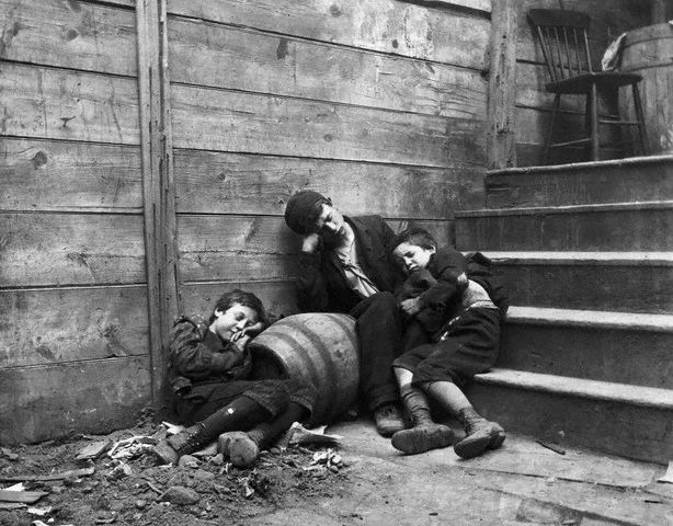 Danés emigrado a Estados Unidos, Jacob Riis conoció de primera mano las condiciones más duras de los bajos fondos de Nueva York, primero mientras trataba de subsistir como joven recién llegado y después trabajando como reportero para diversos medios. Las condiciones de escasa luz en las que tuvo que desenvolverse para tomar fotografías, barrios de escasa o nula iluminación, le obligaron a servirse de luz artificial para las tomas siendo uno de los primeros fotógrafos conocidos en hacer uso del flash, lo que le ha valido su sitio en la Historia de la Fotografía, aunque también hay en ella lugar para su obra maestra, el reportaje gráfico de 1890 'Cómo vive la otra mitad', que le propició la simpatía y amistad del sexto Presidente de los Estados Unidos, Theodore Roosevelt (entonces una autoridad policial), que conmovido por ese trabajo determinó el cierre de los albergues controlados por la policía, que se habían convertido en una especie de prisión para gente sin recursos. Aunque, a pesar del carácter empático y filántropo del trabajo de Riis, en su biografía hay también aspectos oscuros, sobre todo su misoginia y machismo y ciertas afecciones racistas y xenófobas.